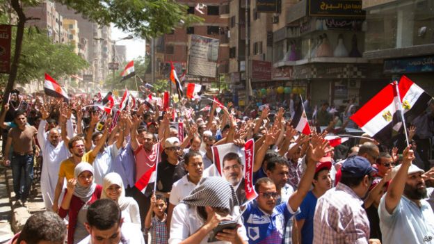 وتقول الصحيفة إنه “نظم أنصار أول رئيس مدني منتخب في مصر، محمد مرسي، مسيرات عقب صلاة الجمعة، في القاهرة، وعدة مدن مصرية، لإحياء الذكرى الثانية لفض اعتصام ميداني رابعة العدوية والنهضة… على الرغم من الإجراءات الأمنية المشددة التي اتخذتها سلطات الانقلاب”.