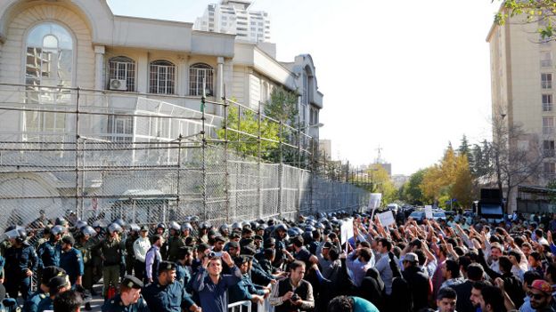 Image copyrightEPAوتنتقد افتتاحية “المدينة” السعودية إيران قائلة إنه “عندما فشل المشروع الإيراني التوسعي … في اليمن، بسبب الحسم السعودي والعربي لجأت طهران لحيل وألاعيب تريد بها التغطية على فشلها هناك”.