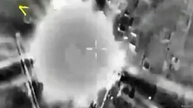 ويقول اوليفانت واصفا الصور التىي نشرها الجيش الروسي لعملياته في سوريا إنها مثل أي جزء من الدعاية الروسية لعملياتها العسكرية في سوريا صور باللونين الأبيض والاسود لما يقول الجيش الروسي إنه انفجارات ناجمة عن غارات شنها على مواقع التنظيم.