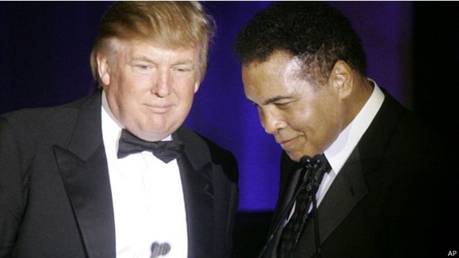 وانخرط محمد علي في الجدل المحتدم حاليا في الولايات المتحدة حول دور الاسلام ومكانته عندما تحدى ترامب مستمعيه – ردا على قول الرئيس باراك اوباما إن من المسلمين من خدموا البلاد كعسكريين ورياضيين – بذكر اسم بطل رياضي مسلم واحد.