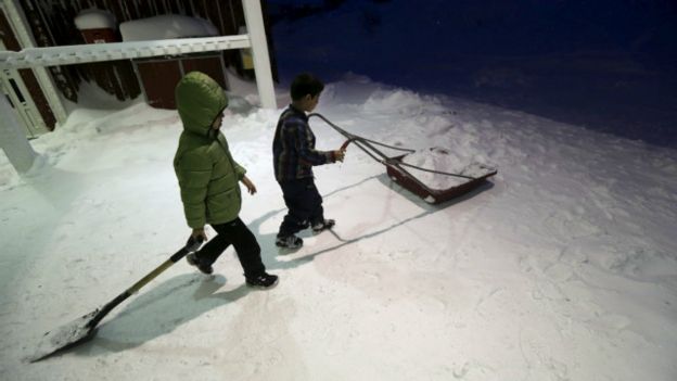 Image copyrightReutersونشرت صحيفة ديلي تلغراف تقريرا عن لاجئين آخرين هربوا من نيران الحرب والقنابل فوجدوا أنفسهم في بيئة متجمدة، تحيط بهم الثلوج من كل جانب، والشمس لا تكاد تطلع عليهم في منتجع شمالي السويد.