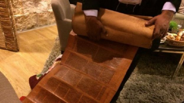 واضاف بيان الوكالة “كان من بين مجموعة ريدة حاخام البلدة، الذي جلب معه مخطوطة توراتية يرجع عمرها إلى ما بين 500 و600 عام”.